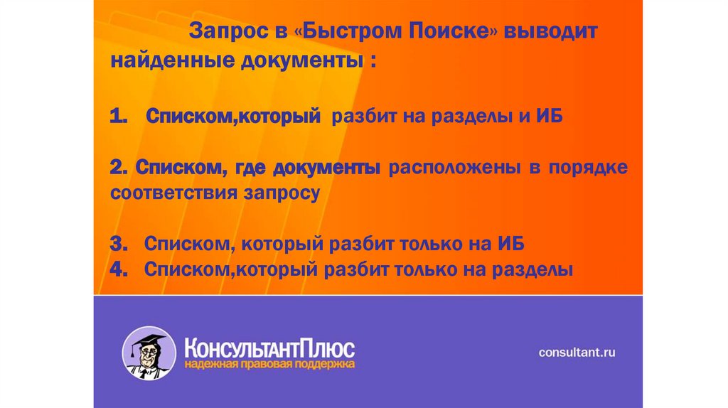 Запрос в «Быстром Поиске» выводитнайденные документы :