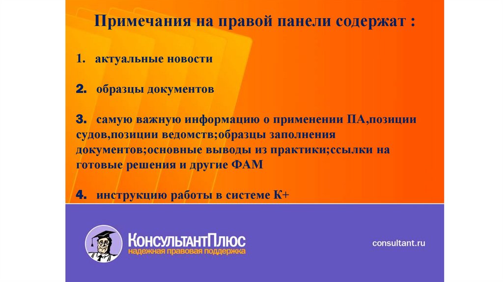 документов;основные выводы из практики;ссылки на
