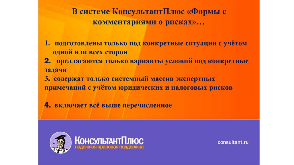 В системе КонсультантПлюс «Формы скомментариями о рисках»…