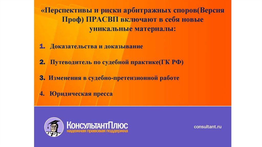 «Перспективы и риски арбитражных споров(ВерсияПроф) ПРАСВП включают в себя новые