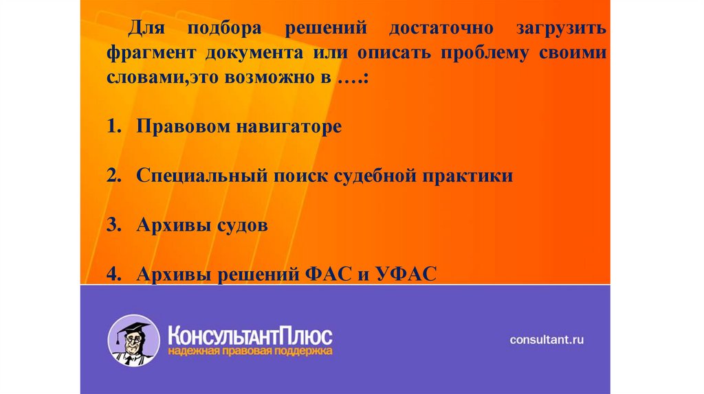 В «Супермассиве судебной практики»КонсультантПлюс есть такая возможность как: