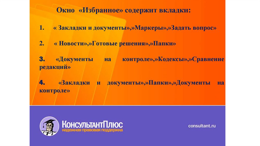 Окно «Избранное» содержит вкладки:1.