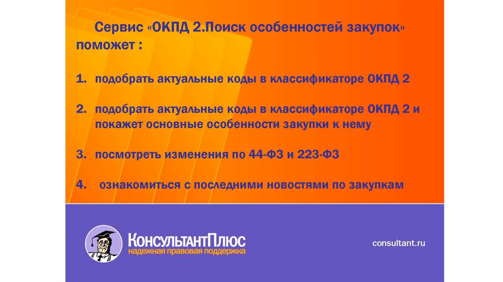 Сервис «ОКПД 2.Поиск особенностей закупок»поможет :