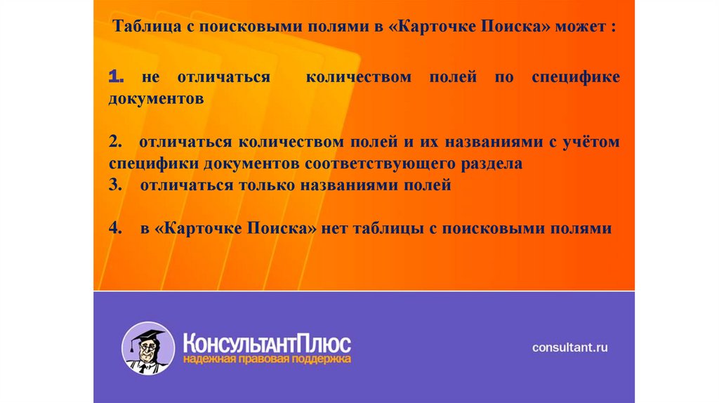 Таблица с поисковыми полями в «Карточке Поиска» может :1. не отличаться