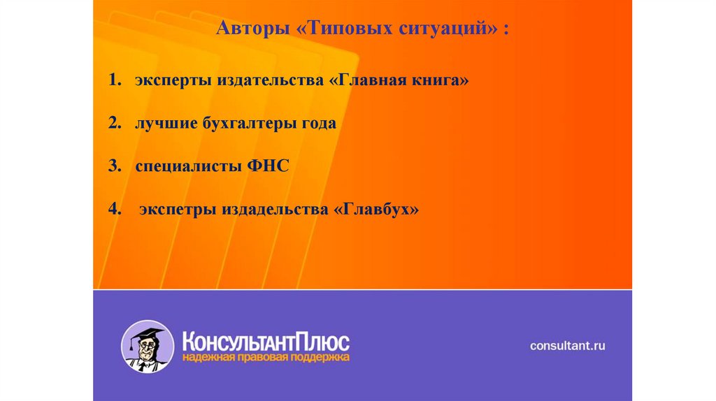 Авторы «Типовых ситуаций» :1. эксперты издательства «Главная книга»