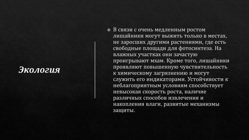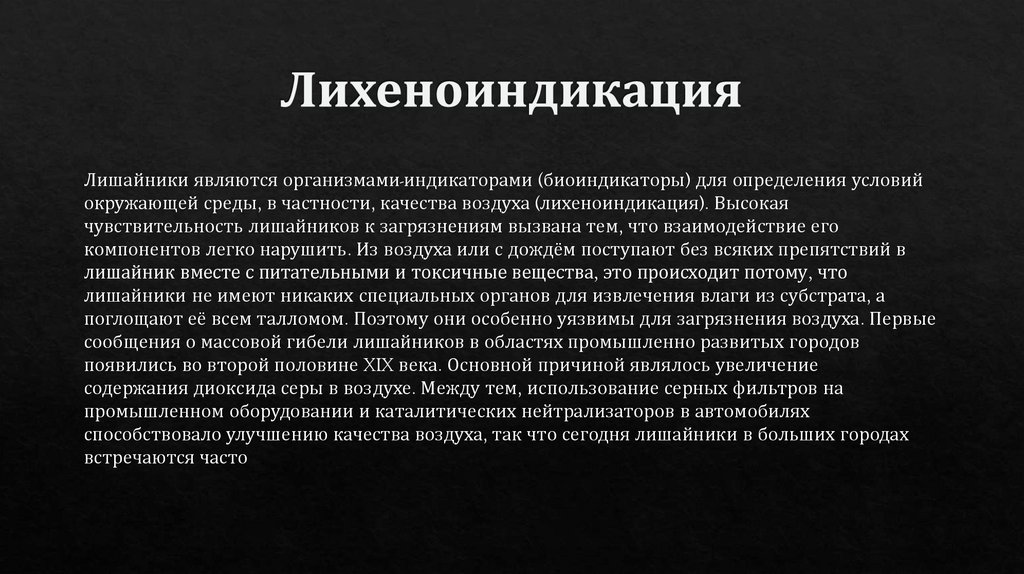 чувствительность лишайников к загрязнениям вызвана тем, что взаимодействие его
