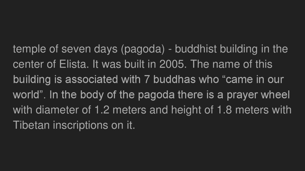 temple of seven days (pagoda) - buddhist building in thecenter of Elista. It was built in 2005. The name of this