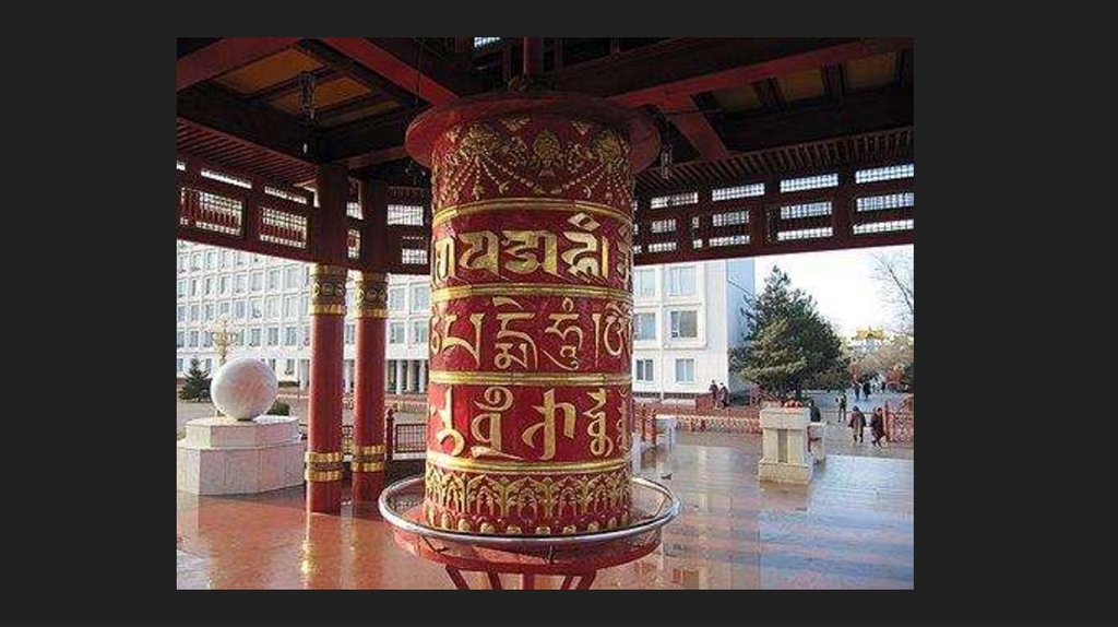world”. In the body of the pagoda there is a prayer wheel