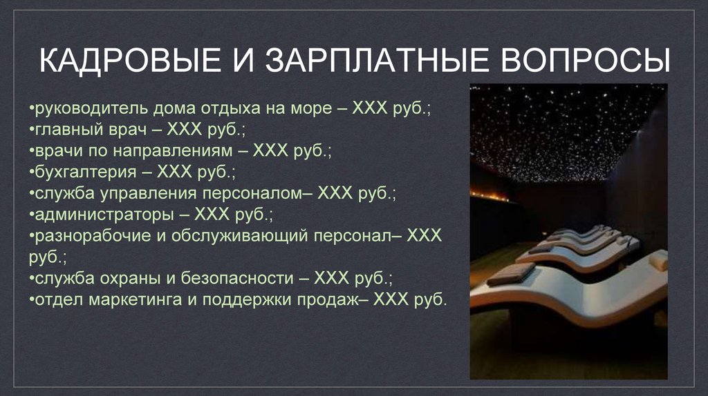 КАДРОВЫЕ И ЗАРПЛАТНЫЕ ВОПРОСЫ•руководитель дома отдыха на море – ХХХ руб.;