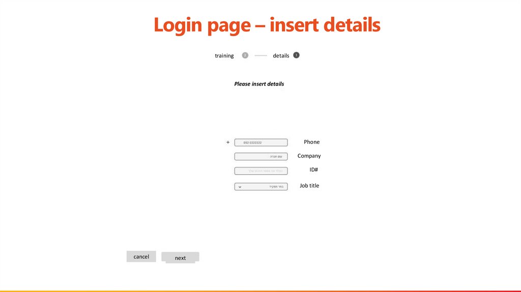 Login page – insert detailstraining