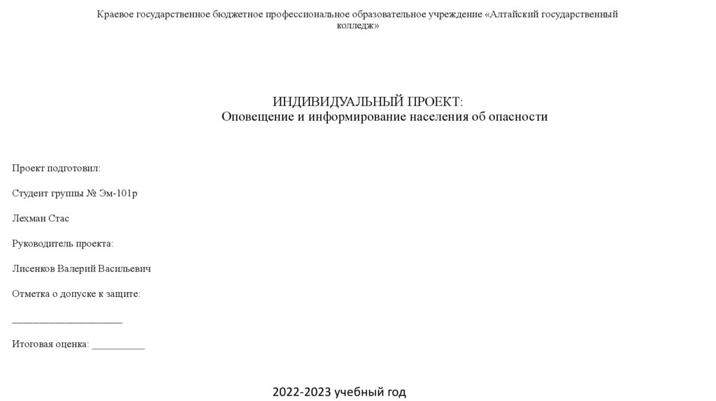 Краевое государственное бюджетное профессиональное образовательное учреждение «Алтайский государственныйколледж»