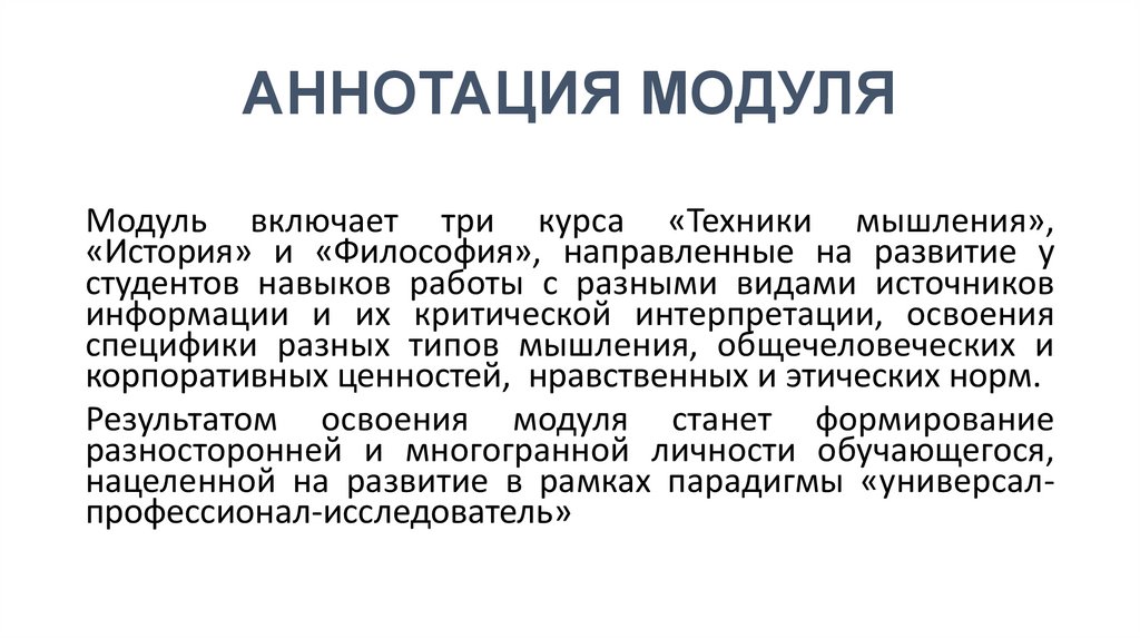 АННОТАЦИЯ МОДУЛЯМодуль включает три курса «Техники мышления»,