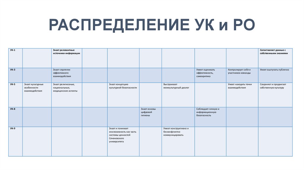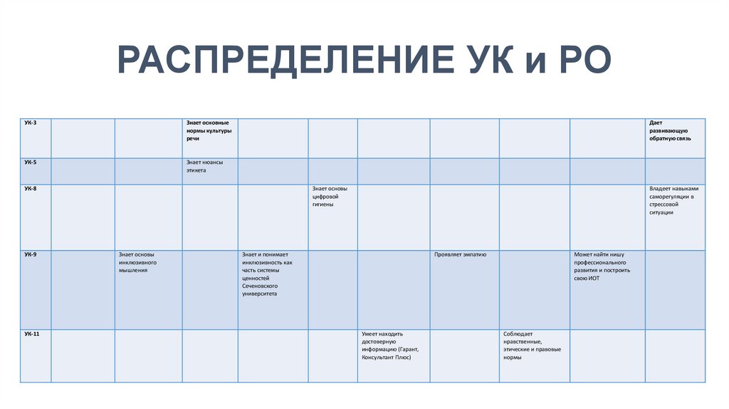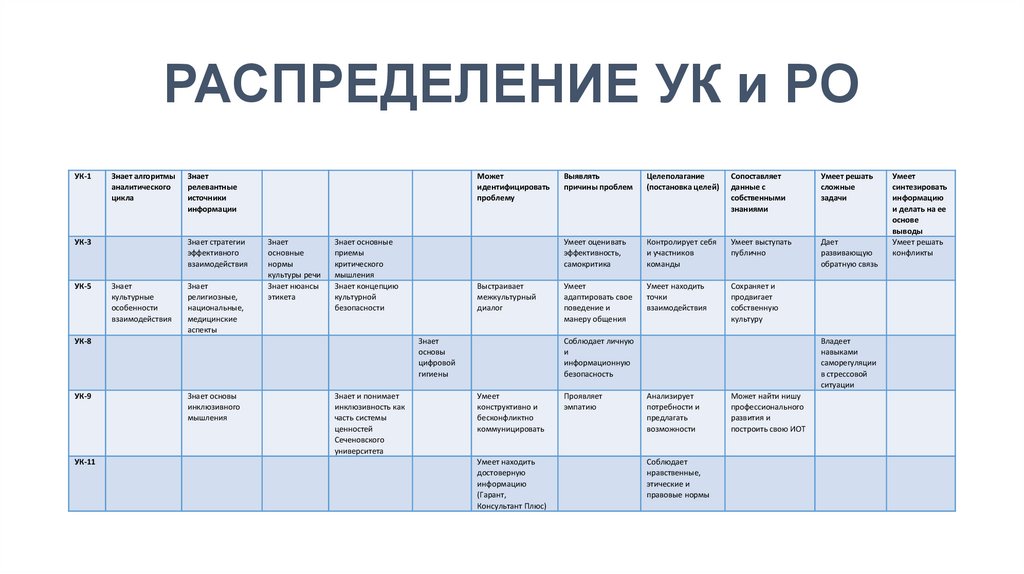 РАСПРЕДЕЛЕНИЕ УК и РОУК-1