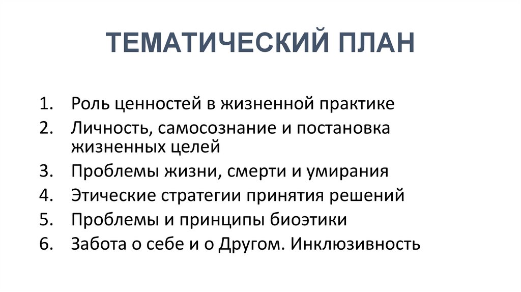 ТЕМАТИЧЕСКИЙ ПЛАН1. Роль ценностей в жизненной практике