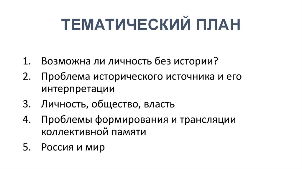 ТЕМАТИЧЕСКИЙ ПЛАН1. Возможна ли личность без истории?