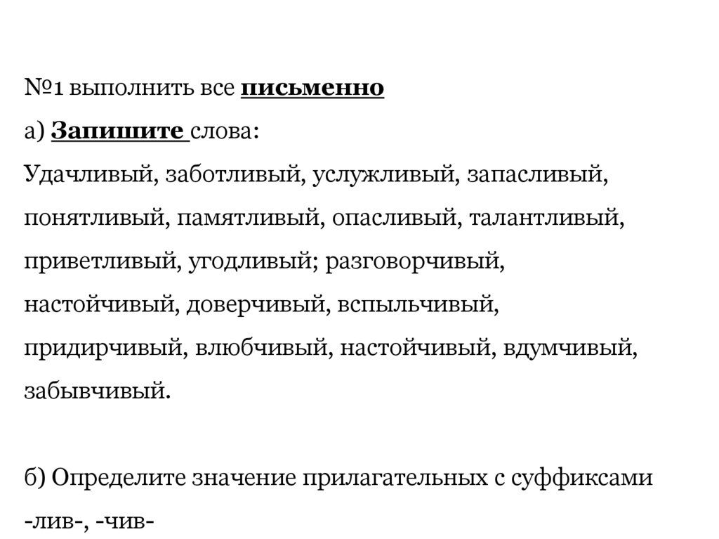 придирчивый, влюбчивый, настойчивый, вдумчивый,
