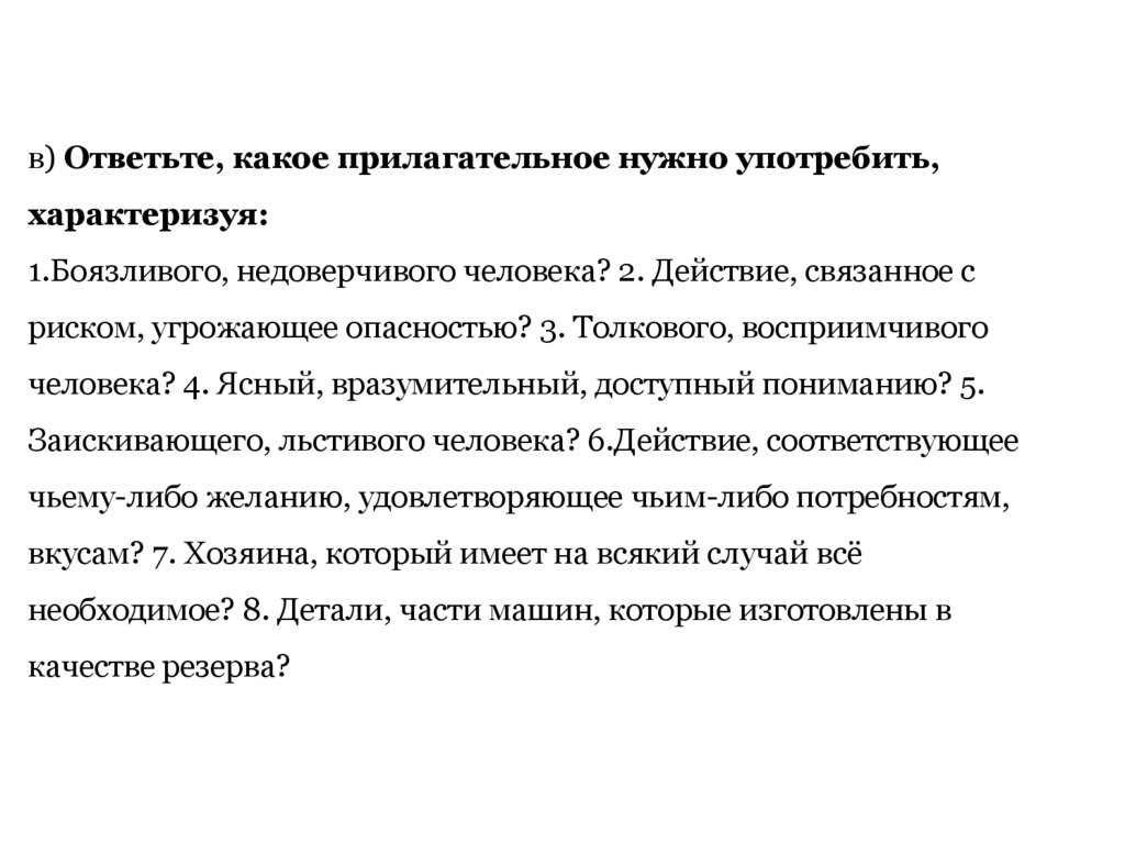 в) Ответьте, какое прилагательное нужно употребить,характеризуя: