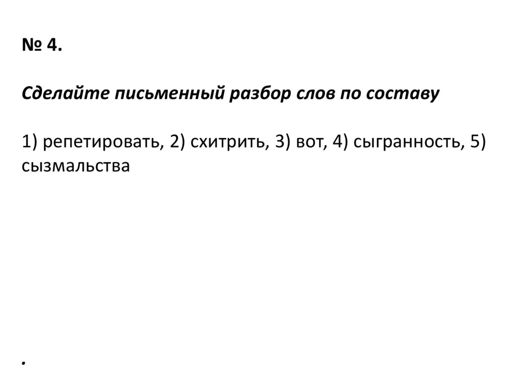 № 4.Сделайте письменный разбор слов по составу