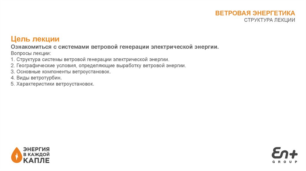 ВЕТРОВАЯ ЭНЕРГЕТИКАСТРУКТУРА ЛЕКЦИИ
