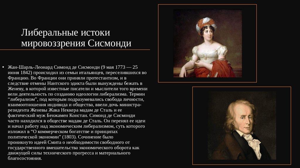 фактический муж Бенжамен Констан. Симонд де Сисмонди