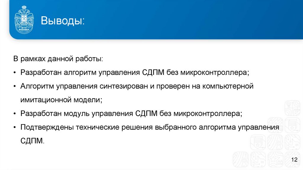 Разработка алгоритма управления СДПМ без микроконтроллера;