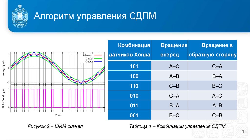 Таблица 1 – Комбинации управления СДПМ