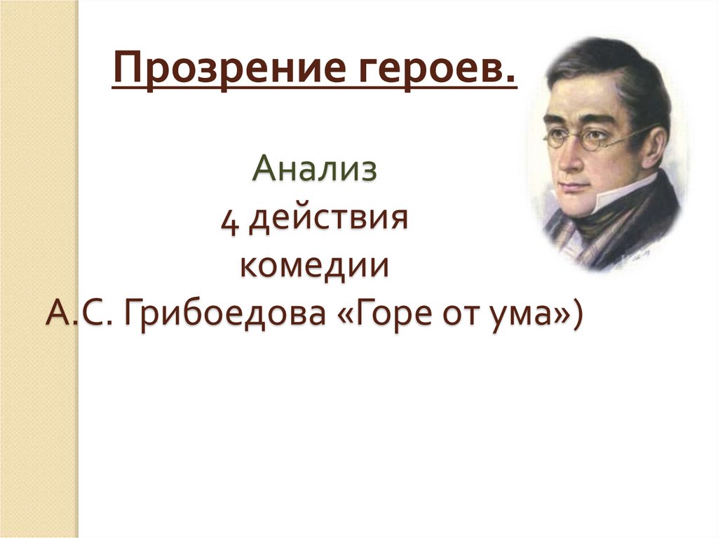 1. Прозрение героев. Анализ 4 действия комедии А.С. Грибоедова «Горе от ума»)