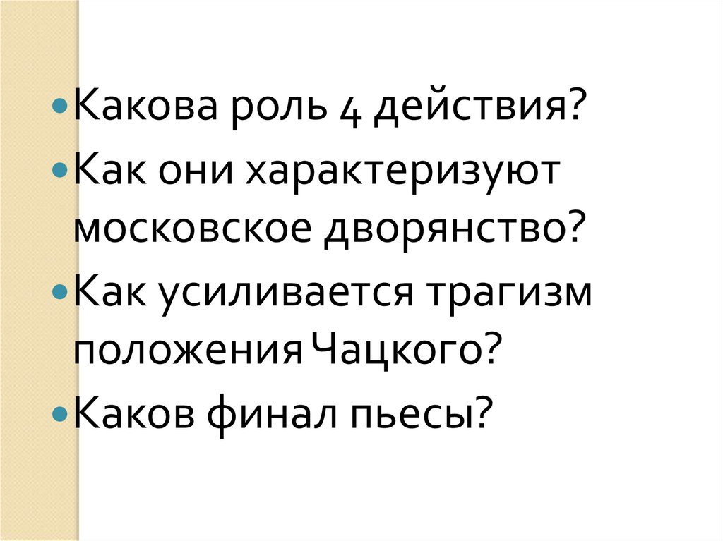 Прозрение героев. Анализ 4 действия комедии А.С. Грибоедова «Горе от ума»)