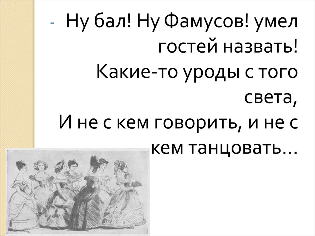 - Ну бал! Ну Фамусов! умелгостей назвать!
