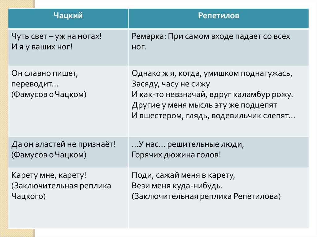 9. - Согласны ли с тем, что в образе Репетилова заключена насмешка над некоторыми взглядами Чацкого? - Как автор противопоставляет