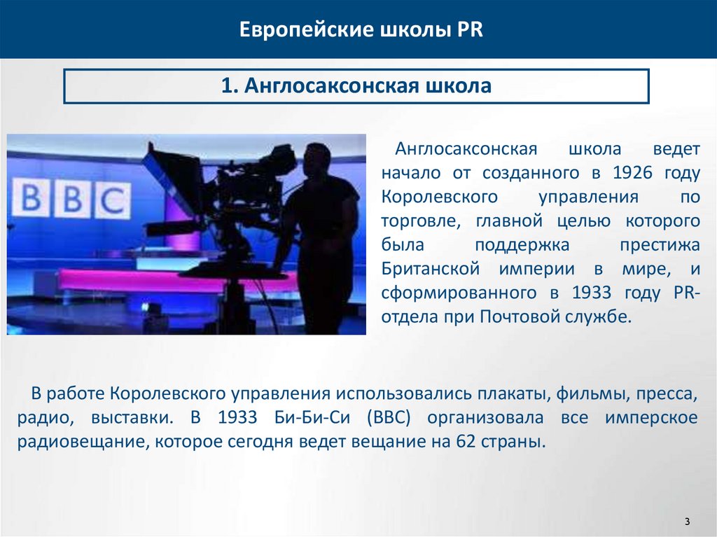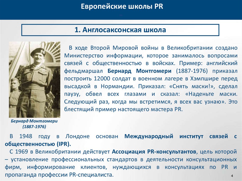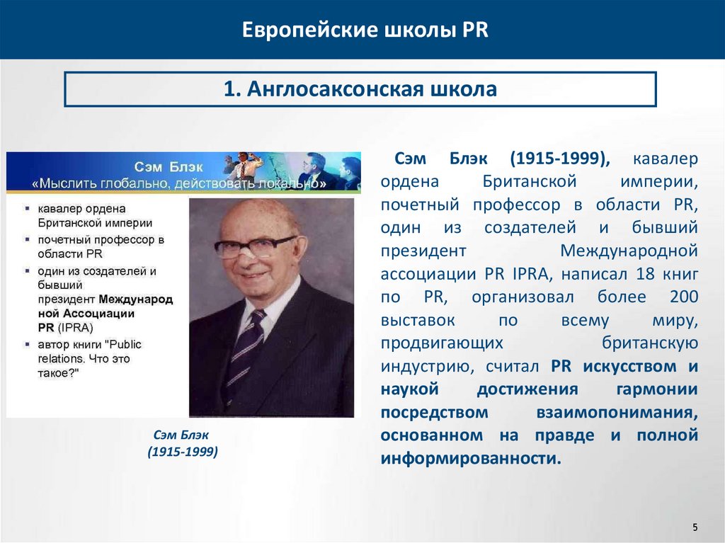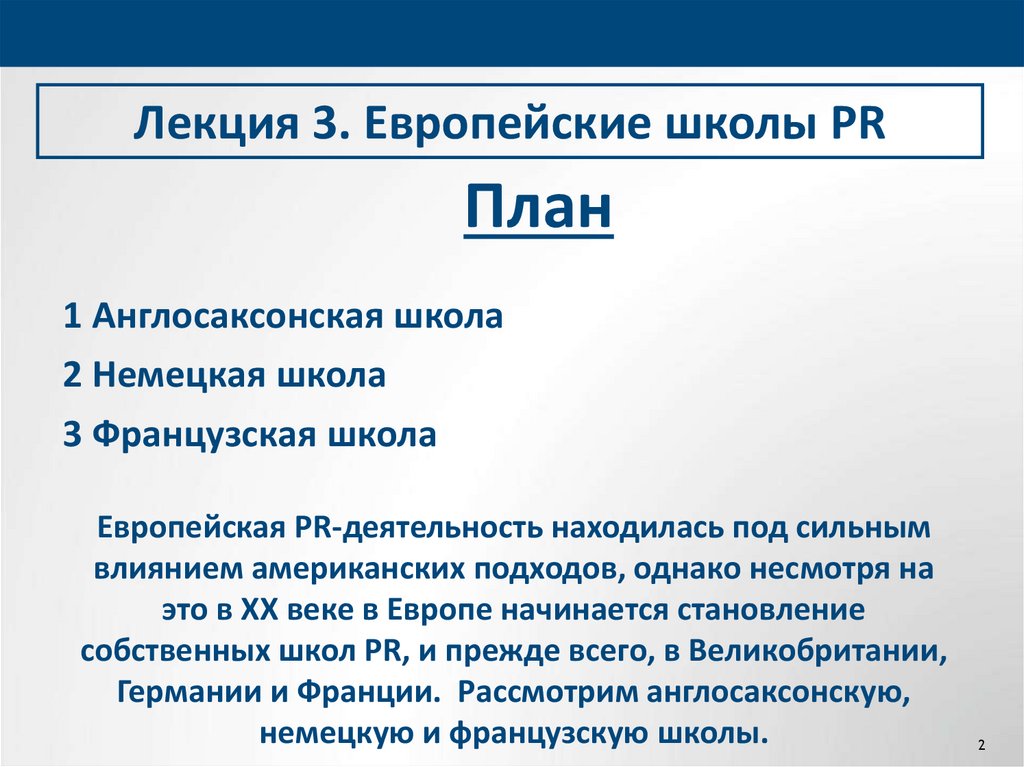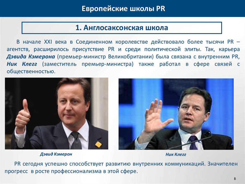 Европейские школы PR1. Англосаксонская школа