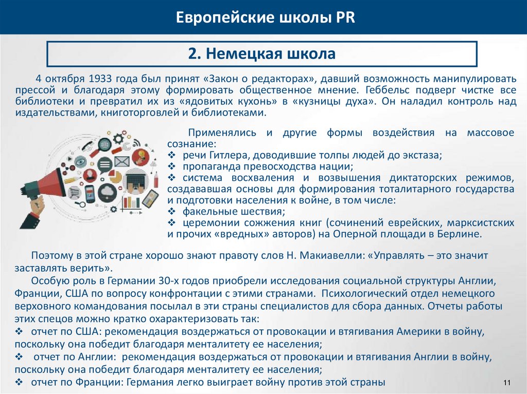 Европейские школы PRВопросы для самоконтроля: