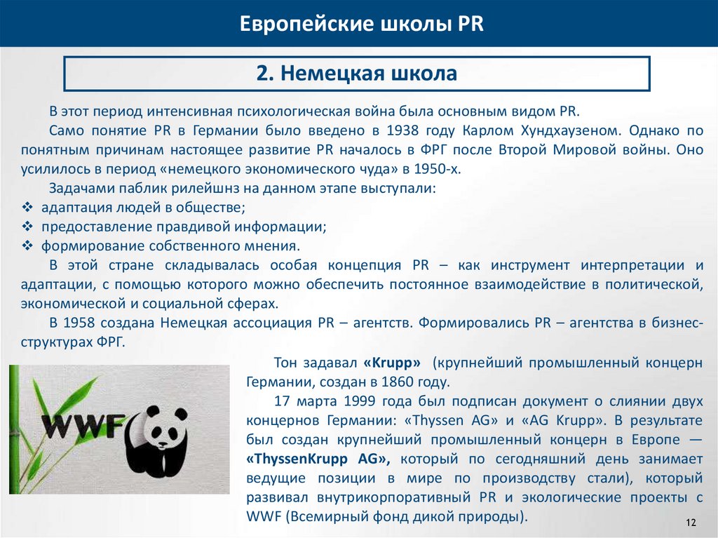 1. В Европе PR–деятельность находилась под сильным влиянием