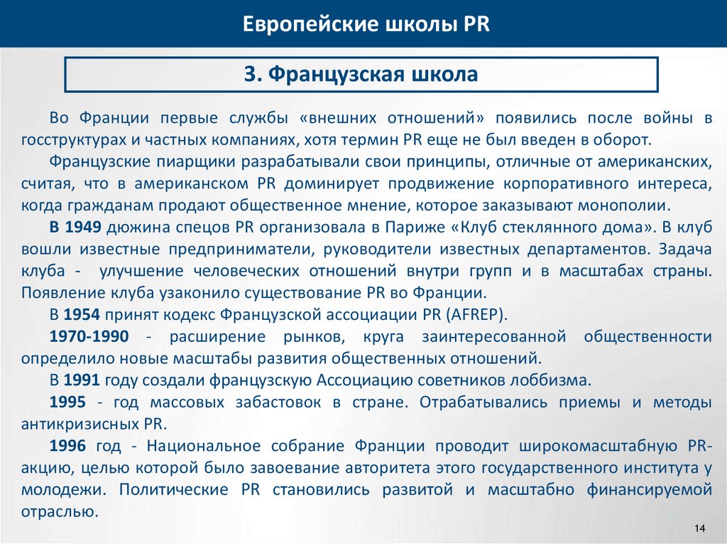 Европейские школы PR7.3. Французская школа