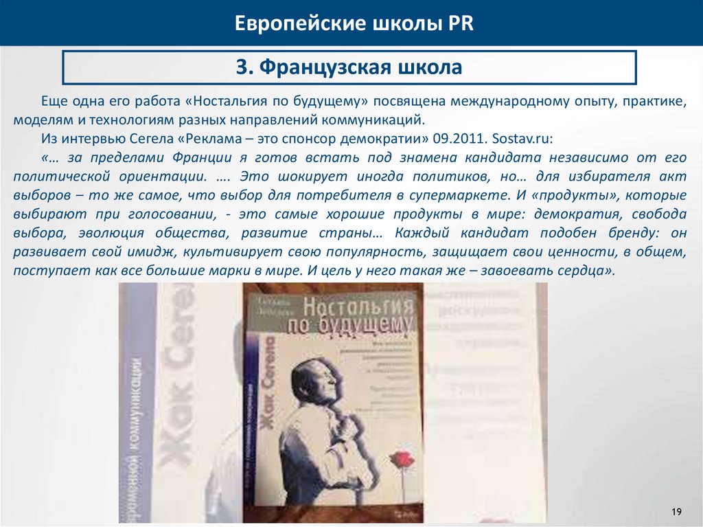 занимает третье место. Как и его друг Сегала стоял на позиции универсальности PR.