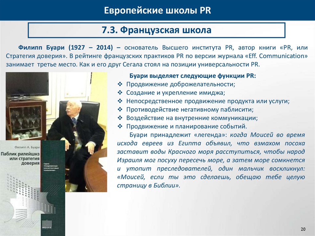 Филипп Буари (1927 – 2014) – основатель Высшего института PR, автор книги «PR, или