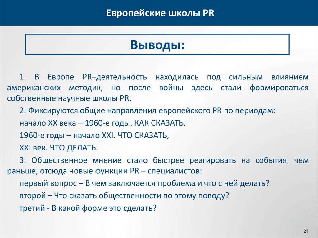 Европейские школы PRВыводы: