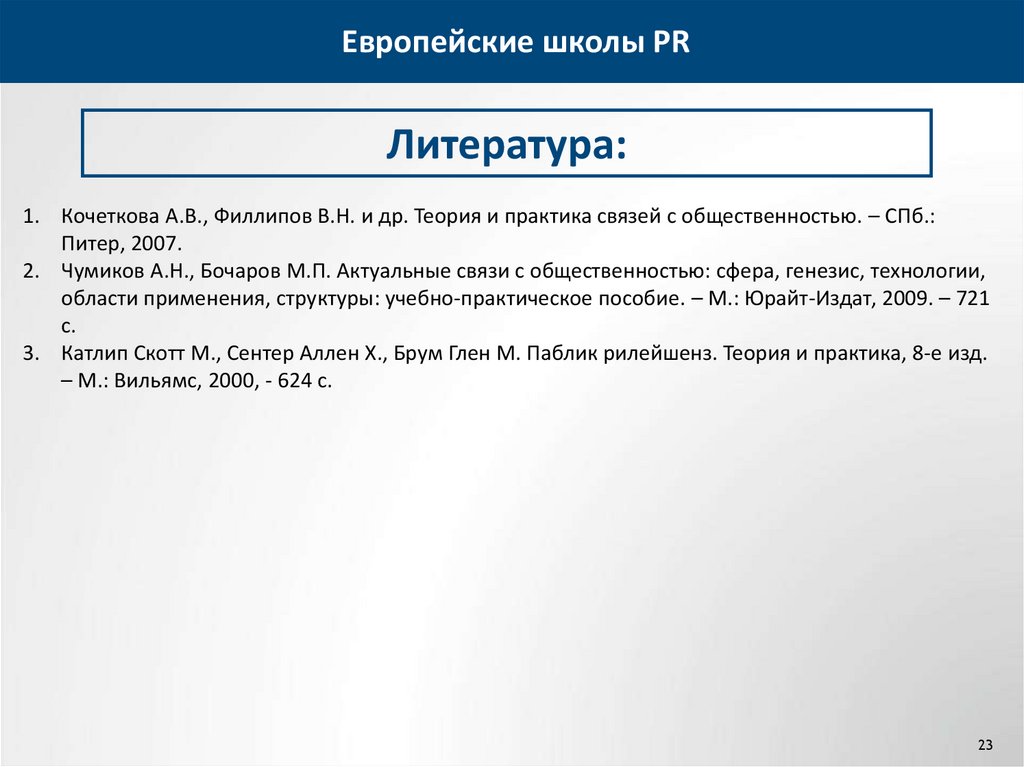 Европейские школы PRЛитература: