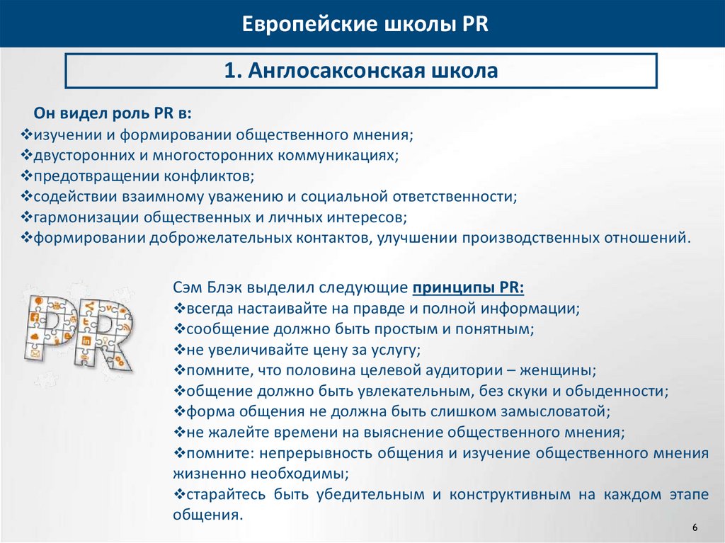 Сэм Блэк выделил следующие принципы PR: