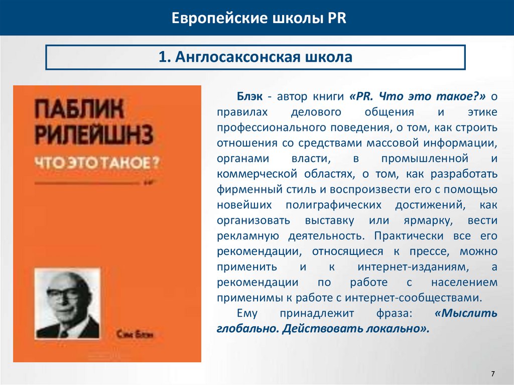 собственных школ PR, и прежде всего, в Великобритании,
