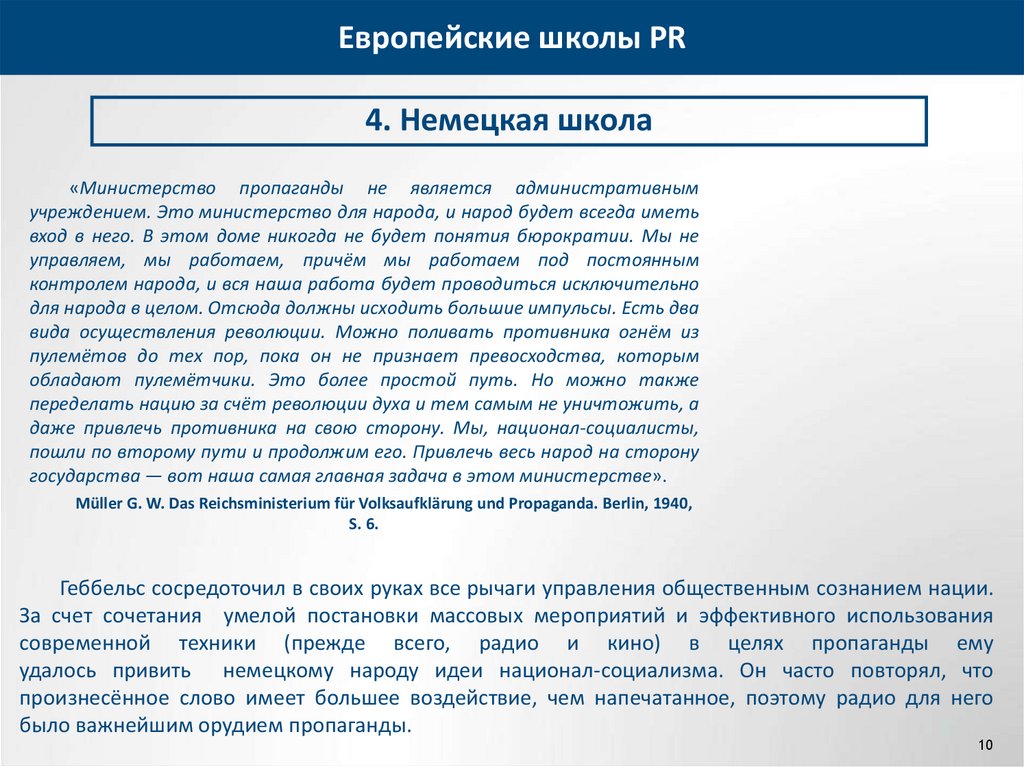 2. Как Вы понимаете высказывание Г.В. Миллера о Министерстве пропаганды в нацистской Германии? Какова
