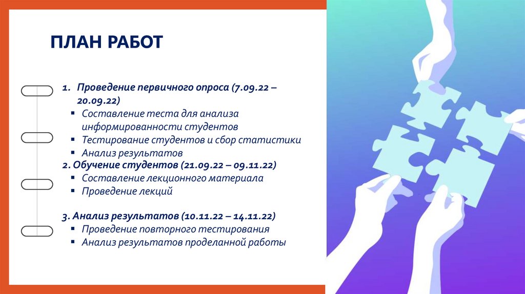 ПЛАН РАБОТ1. Проведение первичного опроса (7.09.22 –