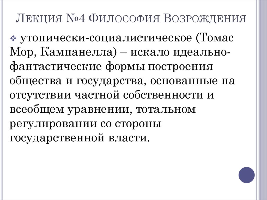 ЛЕКЦИЯ №4 ФИЛОСОФИЯ ВОЗРОЖДЕНИЯутопически-социалистическое (Томас