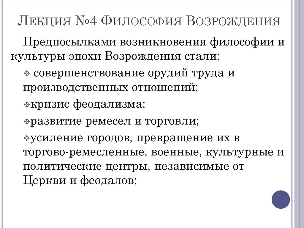 ЛЕКЦИЯ №4 ФИЛОСОФИЯ ВОЗРОЖДЕНИЯПредпосылками возникновения философии и