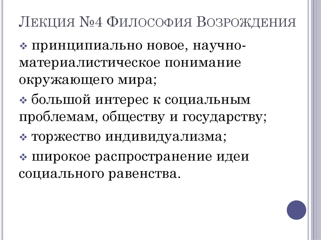 ЛЕКЦИЯ №4 «ФИЛОСОФИЯВОЗРОЖДЕНИЯ»