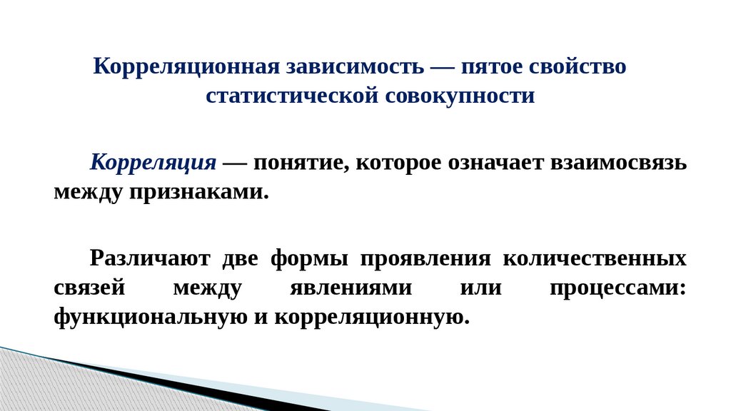 Корреляционная зависимость — пятое свойствостатистической совокупности