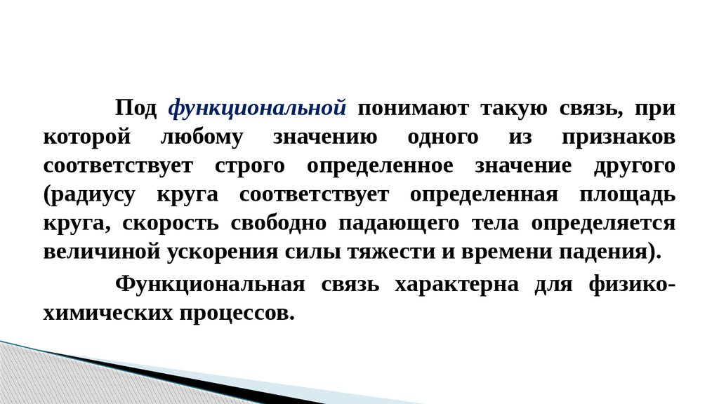 Под функциональной понимают такую связь, прикоторой любому значению одного из признаков
