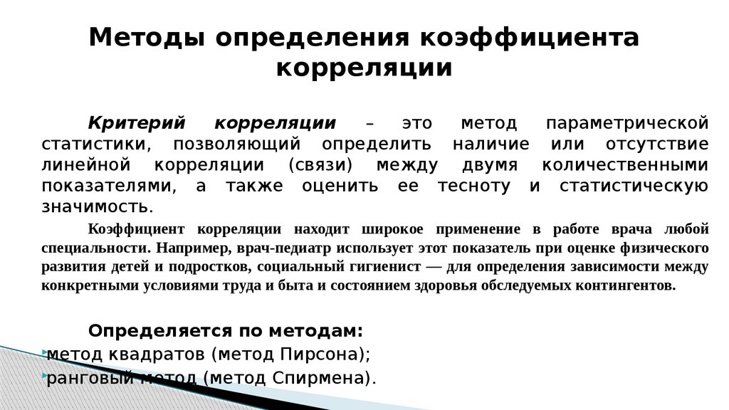 Коэффициент корреляции находит широкое применение в работе врача любой