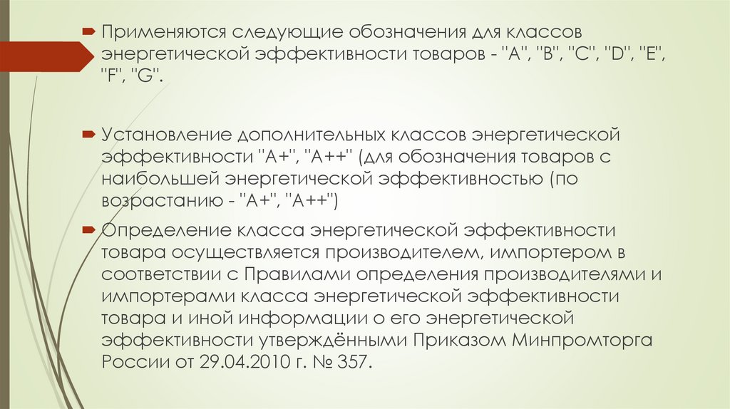 эффективности "A+", "A++" (для обозначения товаров с