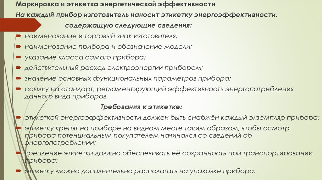 этикеткой энергоэффективности должен быть снабжён каждый экземпляр прибора;